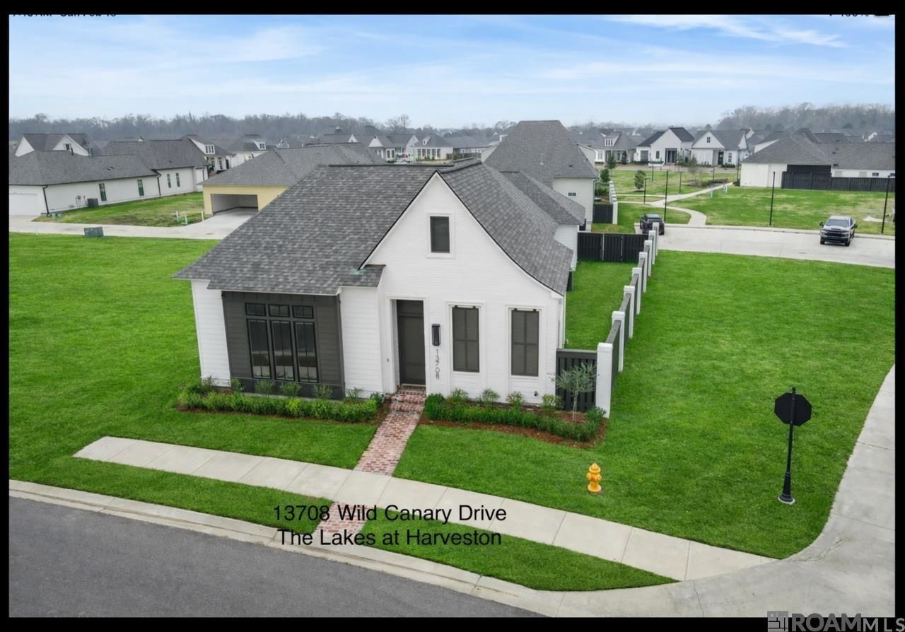 Stunning home on a premium corner lot with additional green space allowing privacy. Sleek black windows, upgraded lighting, a designer fireplace, electric shades, wine cooler/bar set the tone for refined living. Open-concept layout flows seamlessly through the living, dining, and kitchen, featuring custom cabinetry, an oversized quartzite island with a pot filler, double ovens, and premium appliances, and a golf cart garage. The primary suite is a true spa retreat with floating custom wood dual vanities with soft under-cabinet lighting, an oversized walk-in shower, designer tile, and modern fixtures?plus an impressive boutique-style walk-in closet, custom built-ins, and an island. Thoughtful architectural details, wide-plank wood floors, and a chandelier elevate the closet. A rare find blending clean modern lines with warm organic textures?perfect for entertaining or everyday living. Enjoy resort-style amenities just minutes away, including a clubhouse, two pools, a fitness center, a playground, a splash pad, and pickleball courts. Unique opportunity in The Lakes at Harveston.