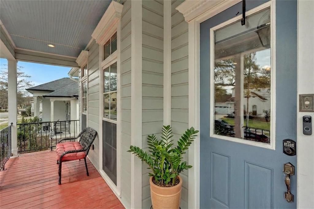 A rare find in one of New Orleans' most desirable neighborhoods, this Oak Park home truly has it all. Just blocks from some of the city's most beloved destinations, including Bayou St. John, City Park, the New Orleans Lakefront, and the highly anticipated Mirabeau Water Gardens. This 5-bedroom, 4-bathroom residence is thoughtfully designed for both comfortable everyday living and effortless entertaining. The main home features 4 bedrooms and 3 full baths, while an attached 1-bedroom, 1-bathroom apartment provides an ideal solution for multigenerational living or a valuable rental income opportunity. Ten-foot ceilings throughout create an airy, open feel. The main home impresses with multiple living areas, including a grand living room with 11-ft ceilings and a surround sound system, a wet bar, a separate dining area, and a kitchen designed for those who love to cook, featuring a deep farm sink, a walk-in pantry, an island with bar top seating, a range oven, and a separate built-in oven. The primary suite is a true retreat, boasting 11-ft ceilings, a large walk-in closet with one additional closet for ample storage, and a spacious en-suite bath complete with a large soaker tub, a separate tiled shower with multiple shower heads, a double vanity, and a private water closet. A fortified roof installed in December 2023 and solar panels work together to significantly reduce the cost of living, from lower insurance premiums to minimal energy bills. The outdoor living space is equally impressive, beginning with a large covered front porch and extending to a screened porch and expansive deck surrounding a refreshing saltwater pool, perfect for relaxing afternoons or lively entertaining. The detached garage, complete with heating and cooling, offers incredible flexibility as additional living space, a home gym, or an art studio.