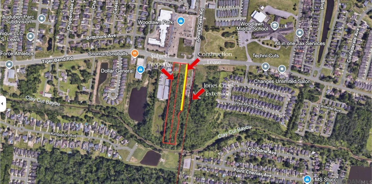 This property offers endless opportunities for future businesses! This prime location offers existing road frontage on Tiger Bend and will have road frontage on the Jones Creek extension that the City will be building. The business opportunities are endless at this location. Come turn this blank slate into your new business! There are existing structures on the property that are included at no added value.