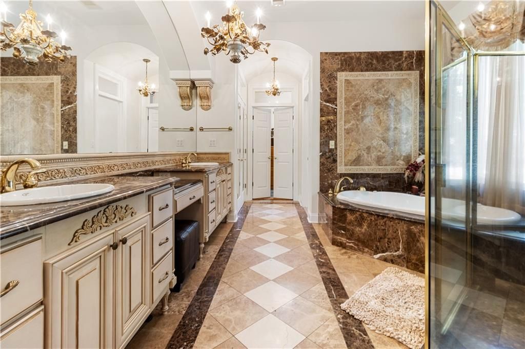 OPEN HOUSE - FEBRUARY 10, 11-1. Discover refined living on a beautifully landscaped 1-acre property in one of the area's most desirable communities. This custom residence showcases timeless architectural detail, generous room sizes, and exceptional indoor and outdoor spaces. A new roof installed in 2023 adds major long-term value. Inside, the home features 12-ft ceilings, rich millwork, real hardwood floors, and full-light French doors that enhance natural light and connect seamlessly to outdoor areas. The main living room offers custom built-ins, a gas fireplace, coffered ceiling details, and views of the screened-in pool. Additional interior spaces include a formal dining room, an office with extensive built-ins, and a large upstairs bonus room for flexible use. The chef's kitchen includes professional-grade appliances, multiple prep areas, abundant cabinetry, granite surfaces, a breakfast area, and a walk-in pantry. An oversized laundry room adds additional storage and workspace. The primary suite provides a retreat-like setting with a marble-wrapped luxury bath featuring dual vanities, a makeup area, Jacuzzi tub, walk-in shower, and detailed architectural accents. Additional bedrooms and baths include walk-in showers and a stained-glass feature. Outdoor living is outstanding, with a full screened-in pool and tiled terrace, an outdoor cooking area, covered patio with ceiling fans, and a separate pergola overlooking the expansive yard. Brick pathways, lush landscaping, fruit trees, and a classical fountain further enhance the grounds. A Generac whole-home generator with service plan adds convenience and reliability.